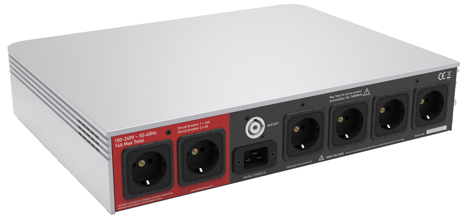 Design-ul V5 dispune de doua sigurante magnetice termice, una evaluata la 16A pentru prizele de mare curent, livrand 3680W la 230V sau 1840W la 115V. Cea din urma este evaluata la 6A pentru cele 4 prize de curent mediu ramase, livrand 1380W la 230V sau 690W la 115V, acestea fiind dedicate pentru componente sursa si dispun de tehnologia unica IsoTek Adaptive Gating. Acestea detecteaza automat sarcina conectata si ofera energia ideala bazata pe puterea consumata.