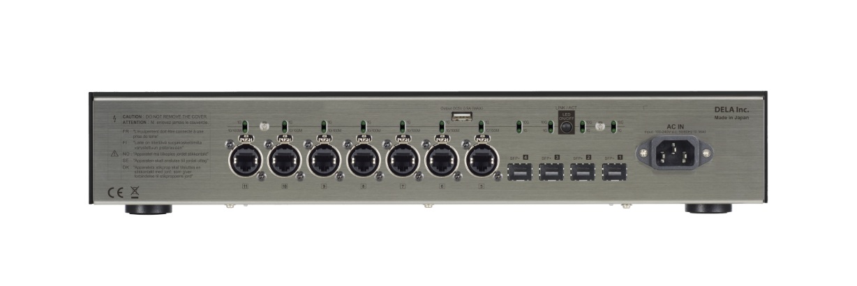 Echipat cu x4 porturi compatibile SFP+*1 și x7 porturi LAN Neutrik RJ45. Porturile SFP+, din ce în ce mai importante, acceptă module SFP+ de 10 Gbps și cablul de conectare directă DELA SFP „C1”. Porturile RJ45 utilizează porturi Neutrik, cunoscute pentru precizia ridicată de conectare și robustețe.