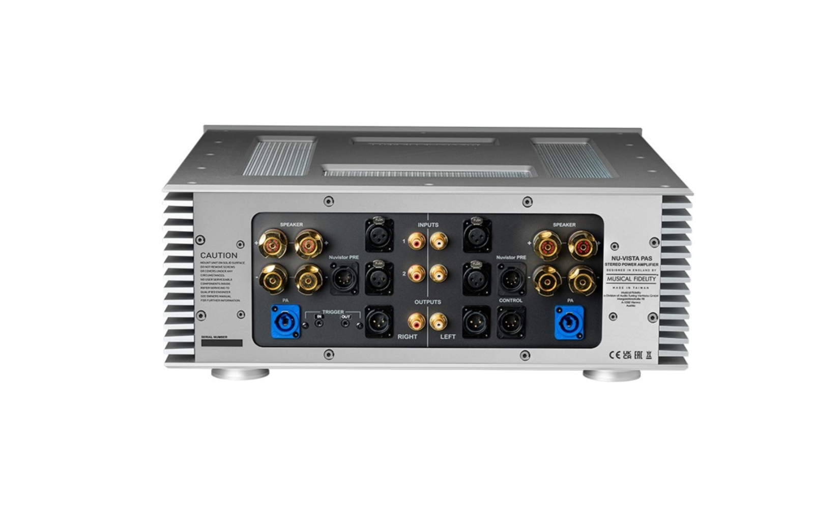Construcția mecanică a Nu-Vista PAS este rigidă și solidă fără compromisuri, în tradiția tipică Musical Fidelity. Panoul frontal și panourile laterale sunt frezate din profile de aluminiu extrudat și sunt extrem de masive.