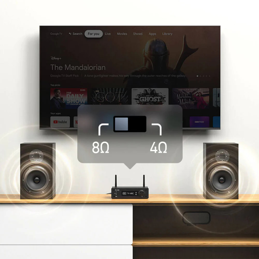 Redați de pe un televizor, vinil, CD player și multe altele la căștile Bluetooth sau difuzoarele Bluetooth cu transmisie Bluetooth 5.2 aptx HD de înaltă calitate.