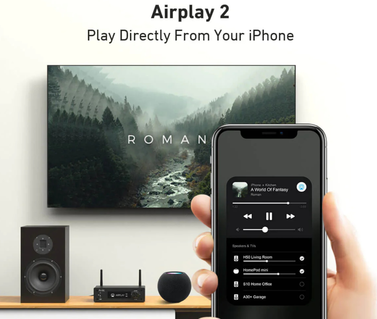 Redă muzică direct de pe dispozitivele Apple și redă wireless muzică pe mai multe dispozitive AirPlay 2, toate în același timp.