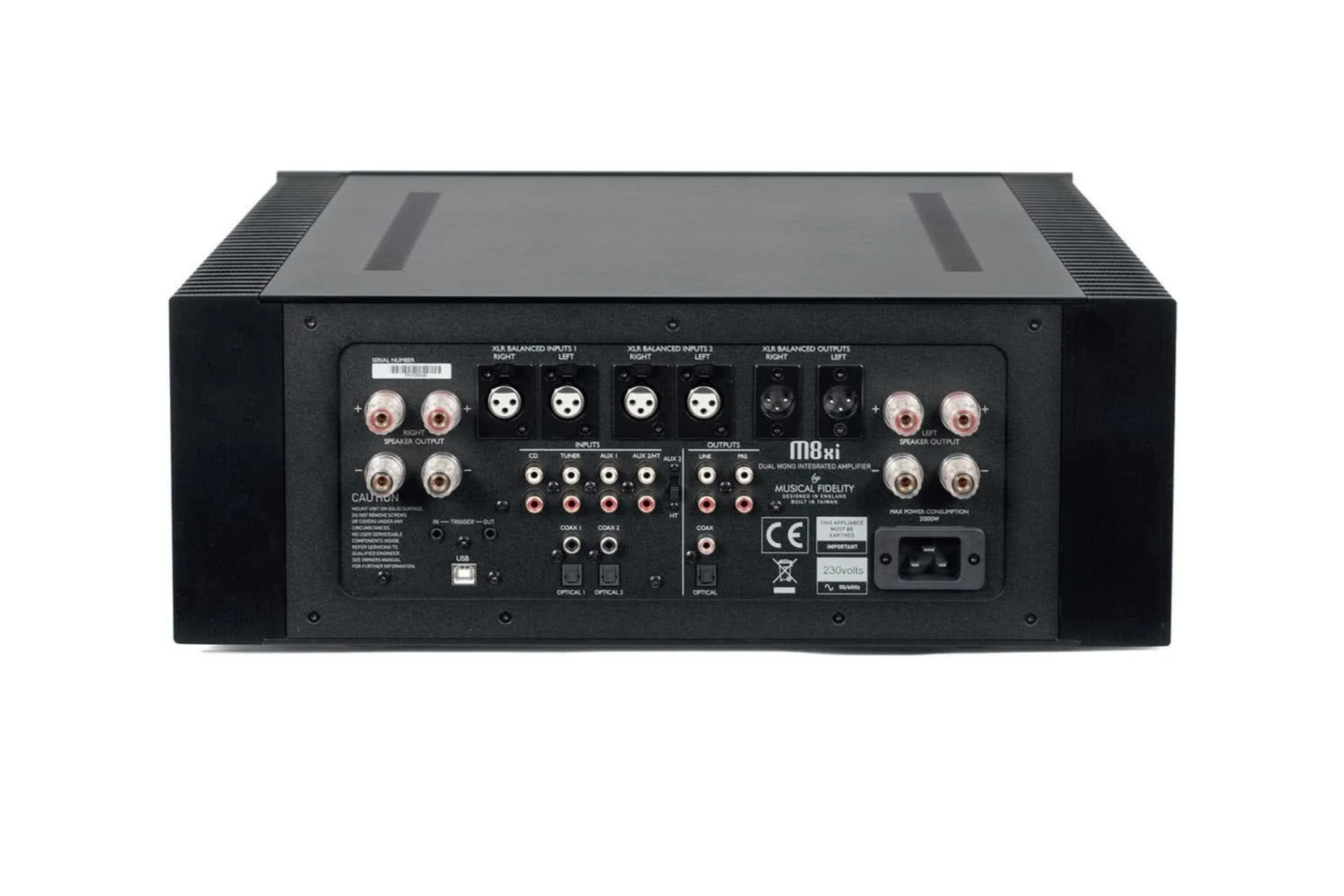 M8xi dispune și de un DAC cu 5 intrări. DAC-urile sunt din ce în ce mai comune în designul amplificatoarelor integrate pentru a adăuga confort la conectarea unei varietăți de surse digitale, așa că s-a luat decizia de a încorpora un DAC care să funcționeze la un standard înalt, independent de amplificator. Pentru o integritate sporită, DAC-ul dispune de propria sursă de alimentare. Bazat pe cipul DAC Texas Instruments PCM5242 TI cu distorsiune redusă și zgomot redus, care este utilizat și în multe alte produse premium din industria hi-fi, precum și în produsele Musical Fidelity anterioare, M8xi are 2 intrări coaxiale (S/PDIF), 2 intrări optice (S/PDIF) și 1 intrare asincronă USB Type-B. Intrările coaxială și USB sunt capabile să suporte fluxuri audio de înaltă rezoluție de până la 24 biți / 192 kHz, iar intrarea optică este capabilă să suporte până la 24 biți / 96 kHz. Pentru performanță maximă, toate fluxurile de date sunt supraeșantionate și recronizate de un convertor intern pentru a reduce jitter-ul și a elimina artefactele nedorite din sunet.