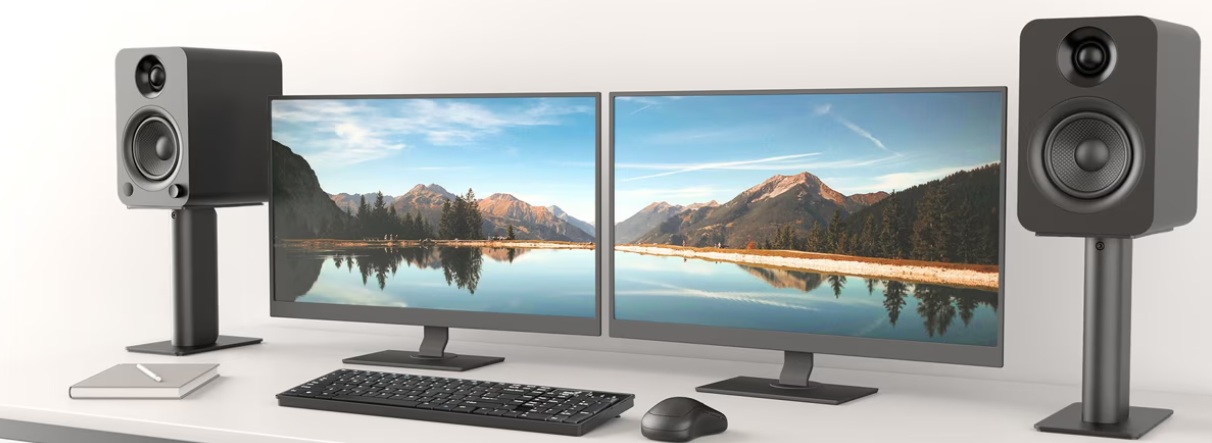 Pentru a reduce vibrațiile și a îmbunătăți sunetul, utilizați YU cu suporturile pentru boxe desktop SP9.