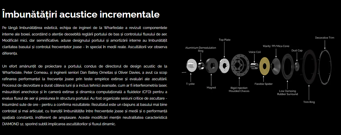 Diamond 12.Ci De la lansarea sa în 2020, seria Wharfedale DIAMOND 12 a primit laude pe scară largă ca standard pentru performanță și valoare în boxele hi-fi accesibile. După peste cinci ani de succes constant, premii și recenzii pozitive atât din partea pasionaților de audio, cât și a criticilor, seria DIAMOND 12 s-a impus ca una dintre cele mai durabile și mai bine vândute serii de boxe. Acum, Wharfedale este încântat să prezinte seria actualizată DIAMOND 12i. Această nouă serie prezintă finisaje luxoase și moderne și îmbunătățiri acustice subtile care se bazează pe fundația solidă a designului original. |