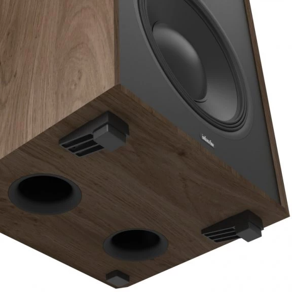 Capacitatea prodigioasă de joasă frecvență a difuzorului Utah 8 se datorează în mare măsură și unui sistem bass-reflex atent reglat, cu două porturi orientate în jos în bază (fiecare cu diametrul de 75 mm). Acesta exploatează cuplarea la podea pentru a întări energia basului. Funcționând cu wooferul de 12 inch într-o incintă generoasă de 66 de litri, sistemul funcționează fără turbulențe sau compresii audibile. Carcasa este așezată în siguranță pe patru picioare amortizate din cauciuc, care o decuplează mecanic de podea și permit alinierii reflex să funcționeze eficient la o frecvență de acordare de 30 Hz. Folosind dopurile de port furnizate, unul sau ambele porturi pot fi blocate pentru a reduce și mai mult acordarea - oferind trei moduri distincte de funcționare.