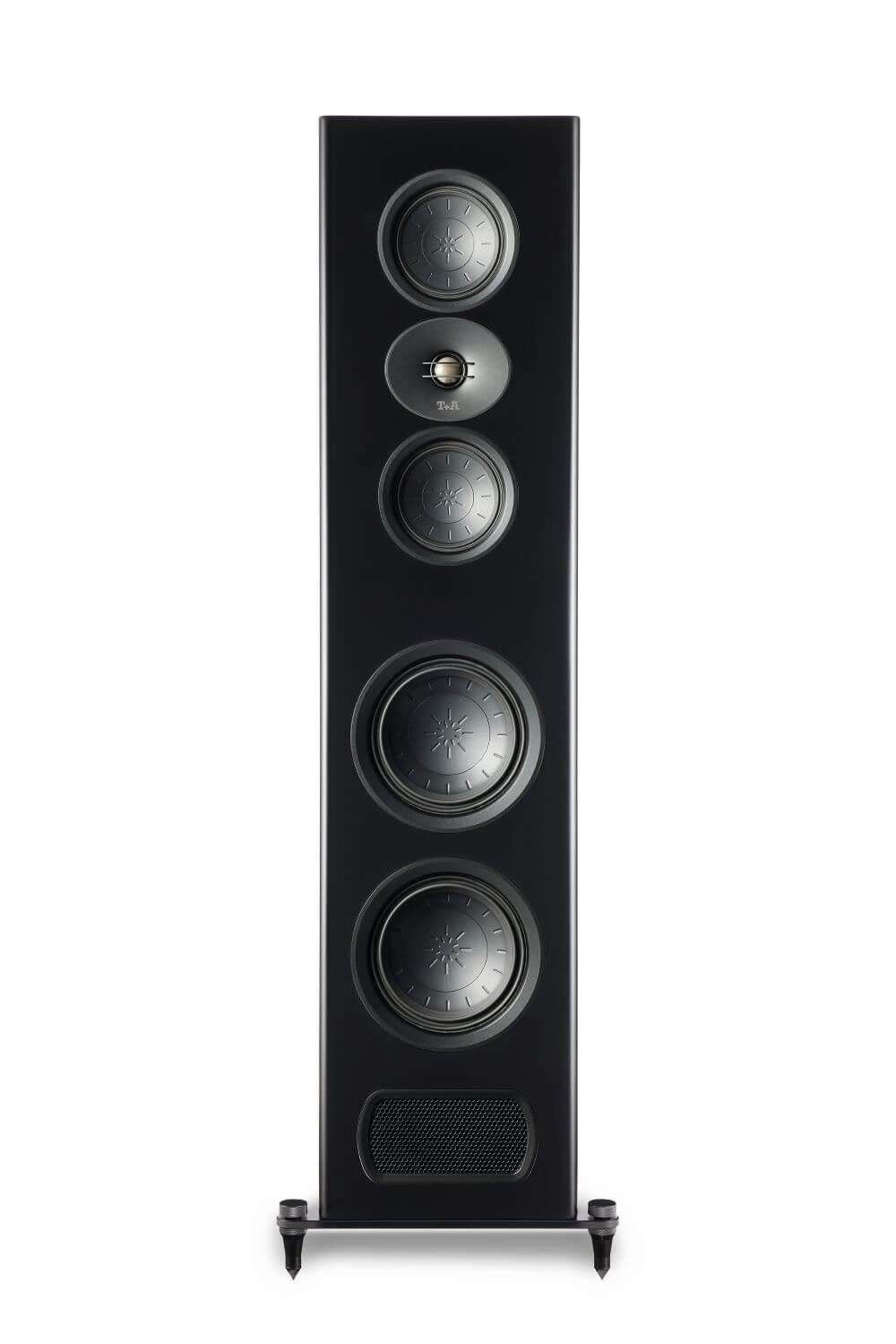 Timp de 40 de ani, reproducerea naturală și nealterată a muzicii ne-a condus: nimic din viziunea din spatele muzicii nu ar trebui să fie eliminat sau adăugat de un sistem T+A. Întreaga gamă de frecvențe medii-înalte a difuzoarelor Criterion este transmisă de un sistem format din două difuzoare midrange plasate concentric în jurul unui tweeter din magneziu. Acest sistem, numit de noi Symmetric Directivity, a fost folosit pentru prima dată la celebrul Solitaire S 430, care a fost folosit la nivel mondial, iar acum aduce comportamentul de radiație definit cu o precizie remarcabilă al difuzoarelor Solitaire într-o nouă gamă de prețuri. Prin utilizarea a două difuzoare medii Star-Stabilizer de 12 cm, deplasarea fiecărui difuzor individual este înjumătățită, factorul de distorsiune este redus, iar liniaritatea este crescută. Controlul calculat cu precizie al driverelor midrange și al tweeterului din magneziu de 25 mm de către crossoverele FSR creează un câmp sonor a cărui energie este mai pronunțată în centrul zonei de ascultare. Radiațiile dăunătoare de pe tavane și podele sunt astfel reduse înainte ca acestea să se transforme în influențe și reflexii deranjante ale încăperii. Ca urmare, sistemul de directivitate simetrică creează o scenă largă cu o gradație reală de adâncime și permite localizarea precisă a tuturor vocilor și instrumentelor.