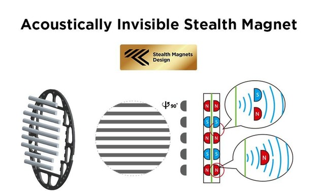 Magneti Stealth ce dispar din lantul acustic: în comparație cu magneții de formă dreptunghiulară ai căștilor planare tradiționale, magneții Stealth reduc semnificativ reflexiile și difracția, ambele dăunătoare calității sunetului, rezultând un sunet mai curat, aerisit, cristalin, sensibil imbunatatit.