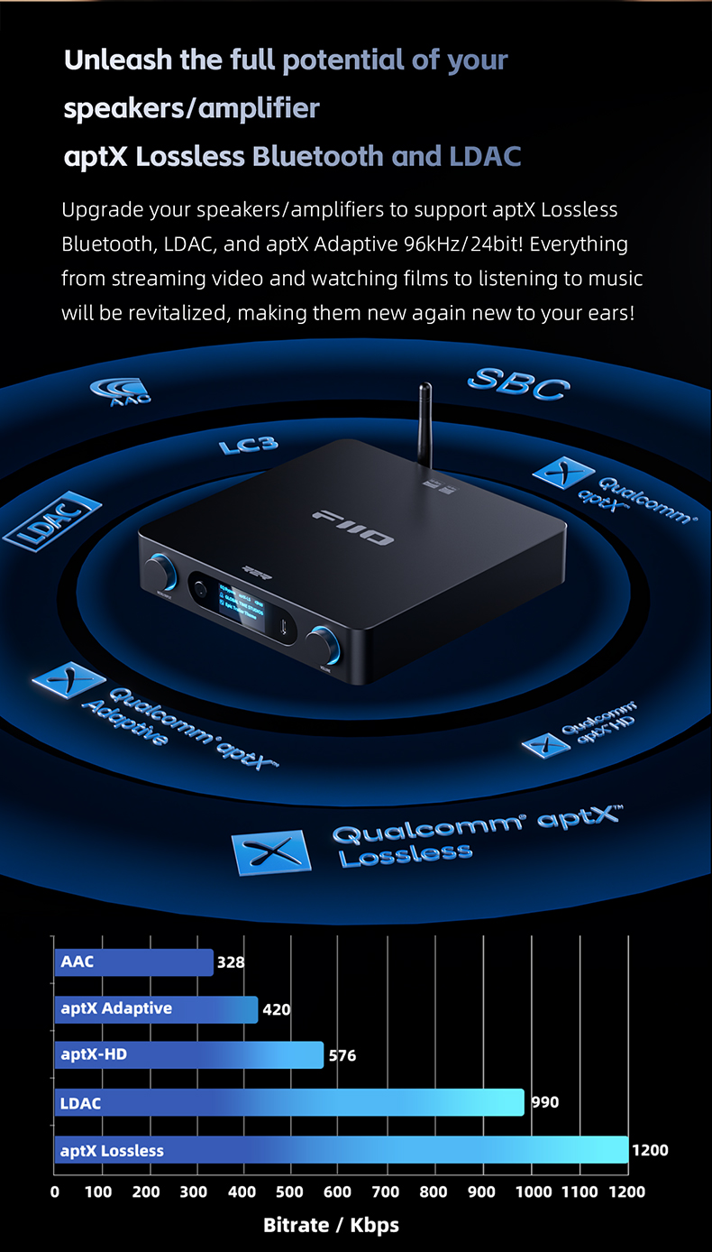 BTA30 PRO transmite codecurile SBC/AAC/aptX/aptX LL/aptX HD/LDAC