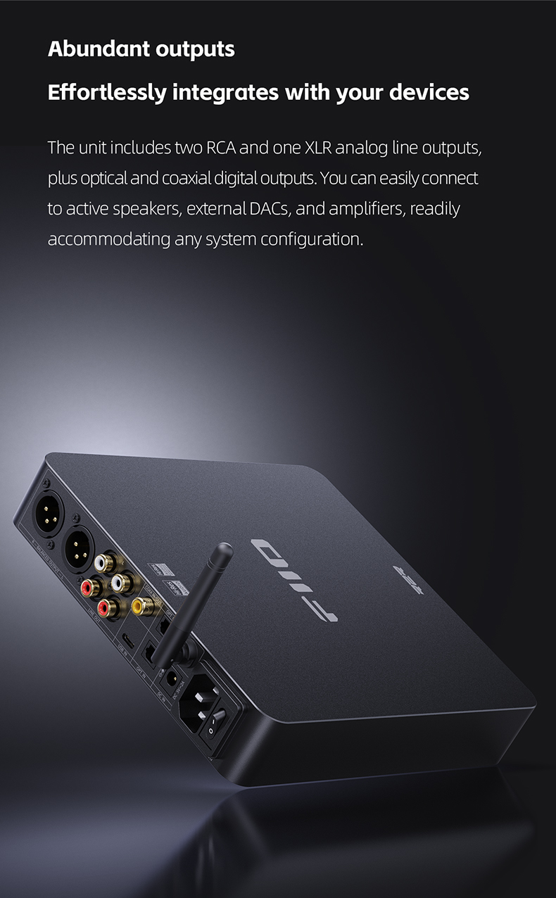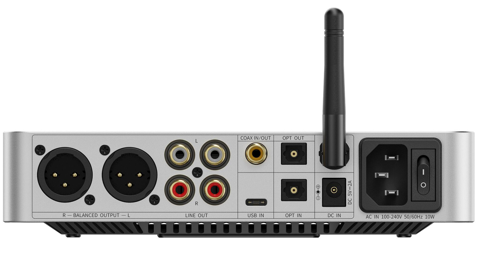 Conectivitate flexibilă: acceptă Bluetooth 6.0 + codecuri moderne (LDAC, aptX Lossless/Adaptive etc.), dar și USB sau SPDIF (coaxial / optic). Pe ieşiri are atât RCA, cât şi XLR balansat, plus ieşiri digitale optice/coaxiale.