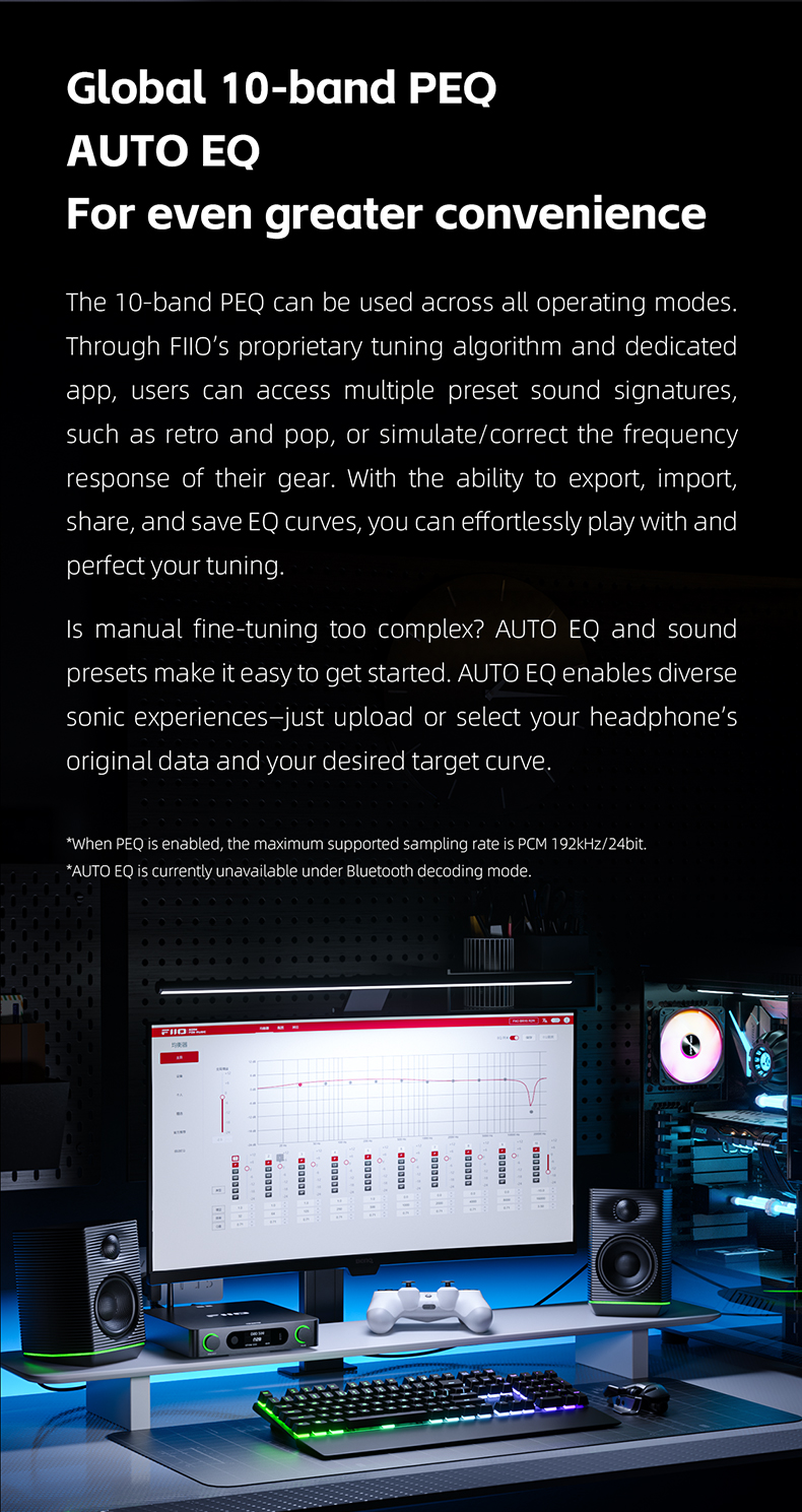Control & personalizare: dispune de display color, controale locale, telecomandă și aplicaţia dedicată a producătorului. Include egalizator (10-band PEQ) + opţiune de Auto-EQ, pentru ajustarea fină a sunetului după preferinţe.