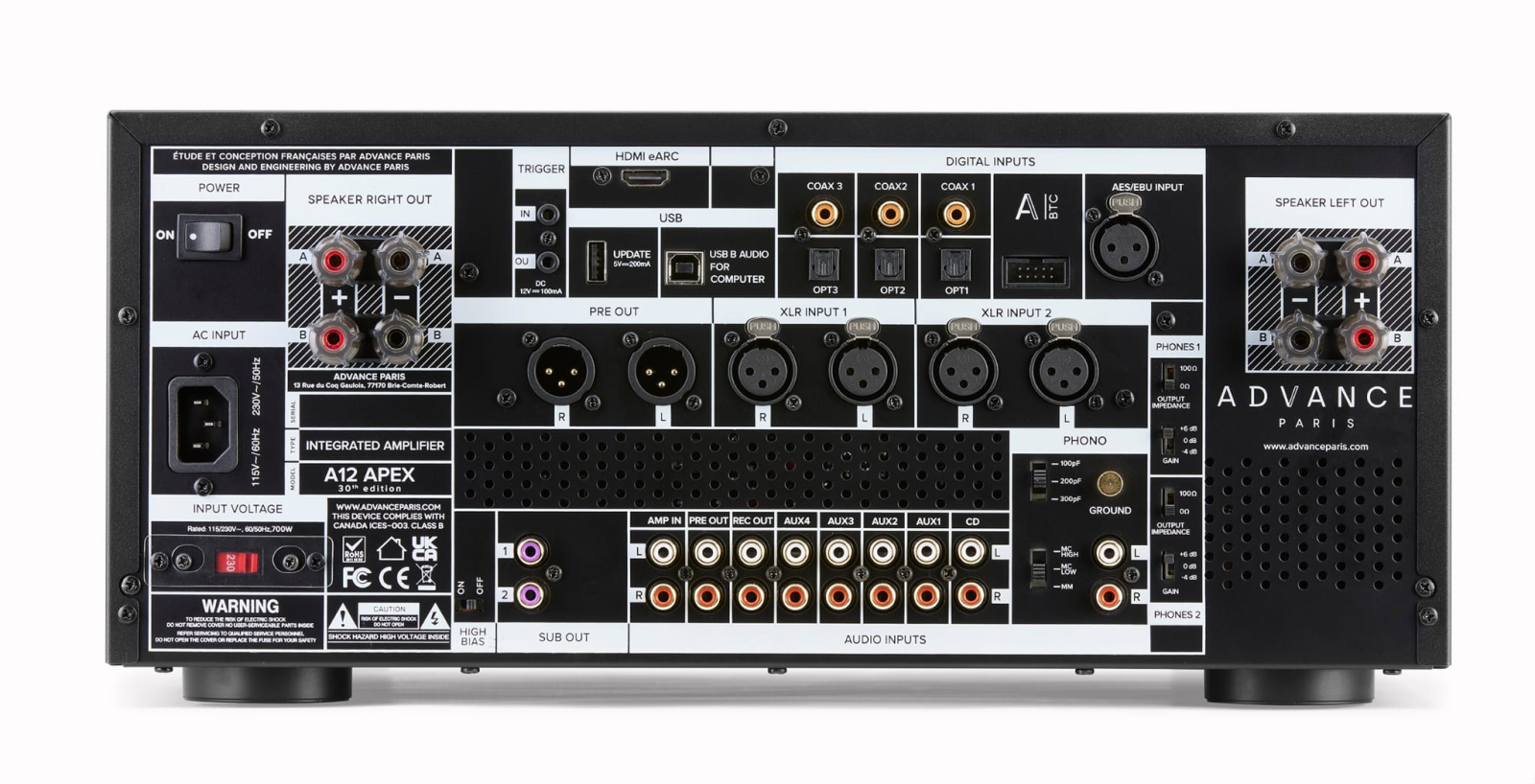 REC-OUT (x1), PRE-OUT (x1) RCA - (1x) XLR, SUB-OUT (x2);