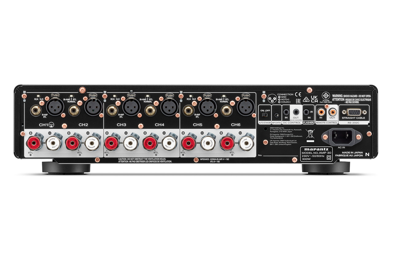 AMP 30 oferă o configurare flexibilă a sistemului, asociindu-se fără efort cu AV 30, receptoarele AV Marantz sau modele AMP suplimentare pentru a suporta configurații de difuzoare mai mari și mai captivante. Este baza ideală pentru extinderea sistemului home theater cu putere constantă și performanța caracteristică Marantz.