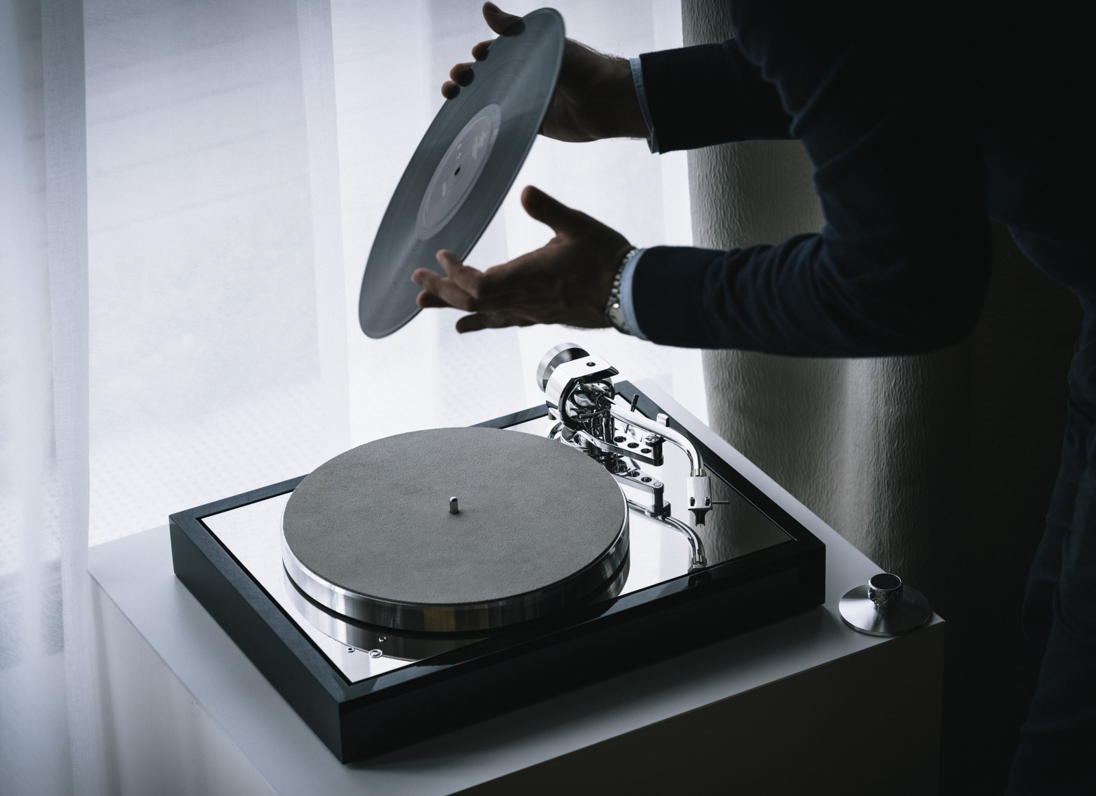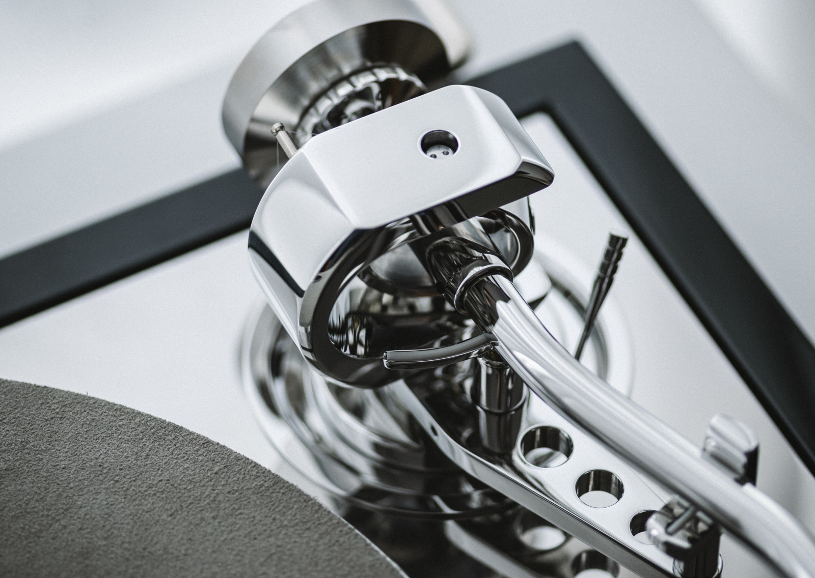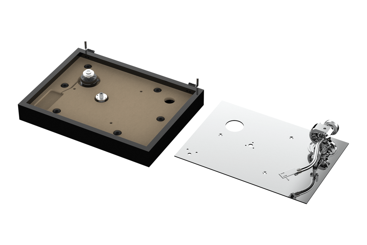 Subplatanul din aluminiu, realizat tot la CNC aduce masa suplimentara si un control mai precis al turatiei