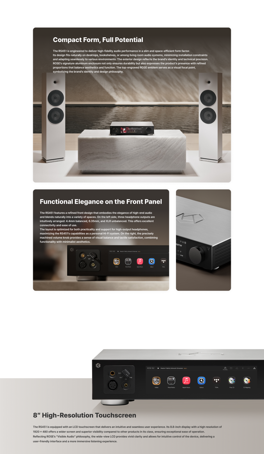 Supported Streaming Services: TIDAL, Qobuz, Apple Music, RoseTube, Rose Radio, Internet Radio