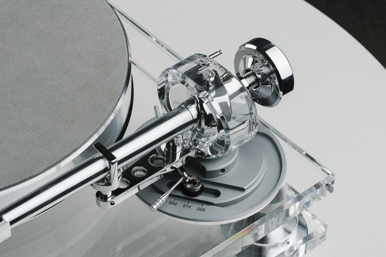 Brațul de 9 inch are același design ca la modelul M8xTT, dar cu un tub mai scurt, un design simplificat al headshell-ului și o ieșire DIN directă 5P. Acesta încorporează designul nostru cu rezonanță ultra-redusă, cu un inel de rulment acrilic transparent și un tub conic din aluminiu. Brațul este complet reglabil VTA și azimut și este dotat cu două contragreutăți, amortizate TPE pentru a preveni rezonanțele.